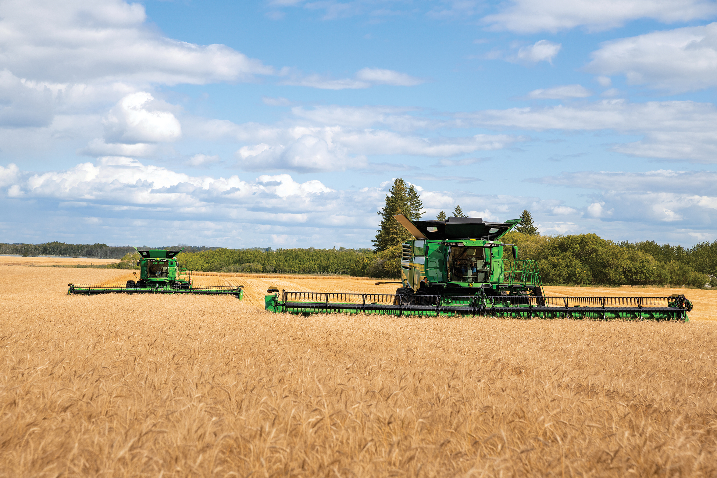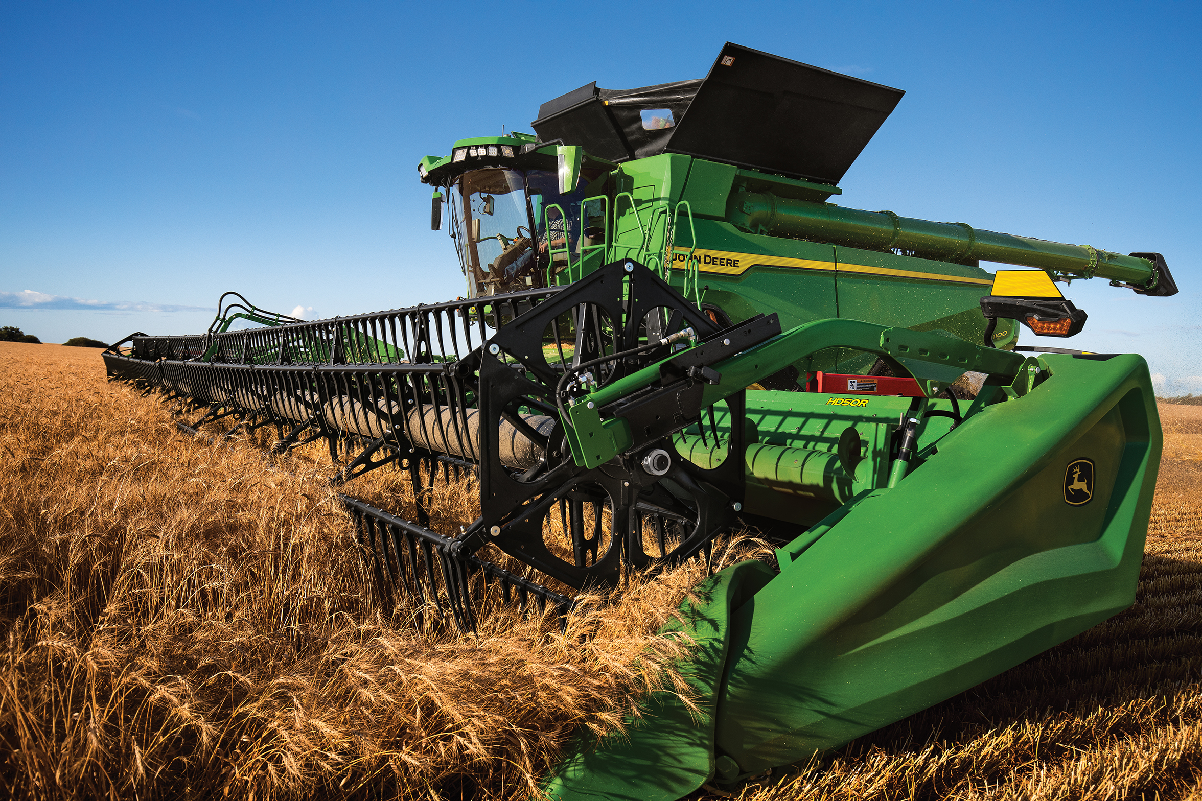 During harvest, highly fuel-efficient X Series Combine Harvesters can run up to 14 hours without refueling, while an all-new John Deere PowerTech 13.6L Engine works with a robust belt-drive system and updated ProDrive XL Transmission to improve fuel efficiency.