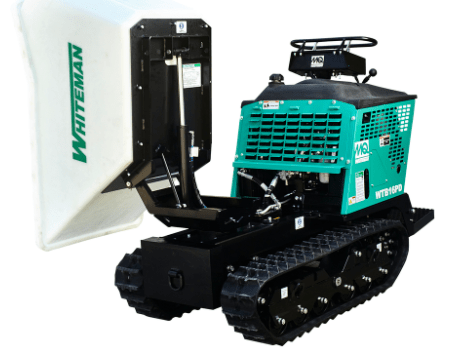 MQ Whiteman, the leader in compact motorized buggies, introduces a new track-drive power buggy featuring a Pivot Dump.