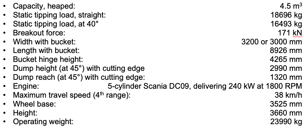 With an output of 240 kW (326 HP) of power at 1800 RPM, the Scania DC09 engine in the DL420CVT-7 provides generous torque at low RPM and meets Stage V emission regulations without the need for exhaust gas recirculation (EGR), through the use of selective catalyst reduction, diesel oxidation catalyst and diesel particulate filter (DPF) after-treatment technologies. The soot cleaning cycle on the DPF has been improved to over 6000 h and the operator is fully informed about the status of the DPF via a soot level indicator on the new touchscreen display in the cab.